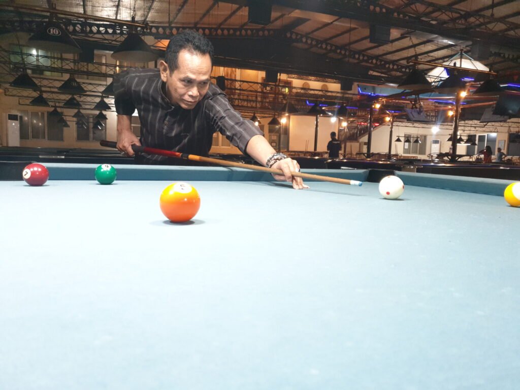 Suasana lokasi di Berlian Billiard yang berada di jalan raya warung buncit Jakarta Selatan, ramai dengan pemain Billyard profesional. Bola bola masuk lobang dengan pukulan manis.