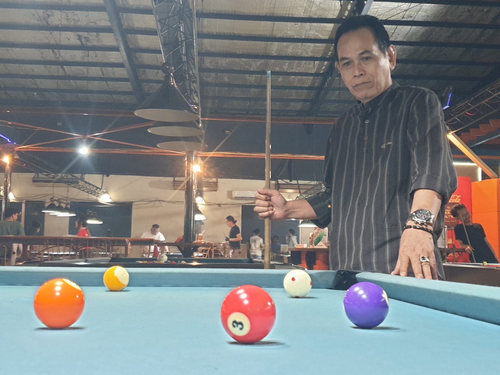 Suasana lokasi di Berlian Billiard yang berada di jalan raya warung buncit Jakarta Selatan, ramai dengan pemain Billyard profesional. Bola bola masuk lobang dengan pukulan manis.